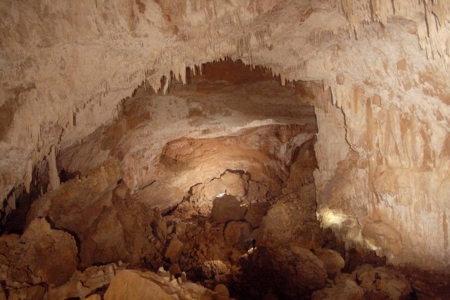 Eventually the enormous Lobster Chamber is reached. A small ‘beach’ marks the start of the Chamber. The most obvious route is to stay low on the right hand side and follow the sound of water. It may take around 15 minutes to navigate across the chamber.
